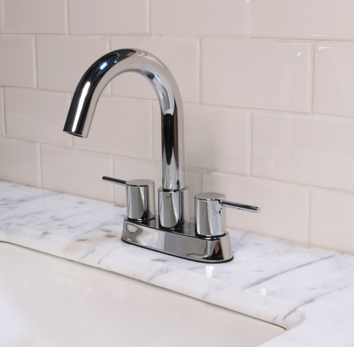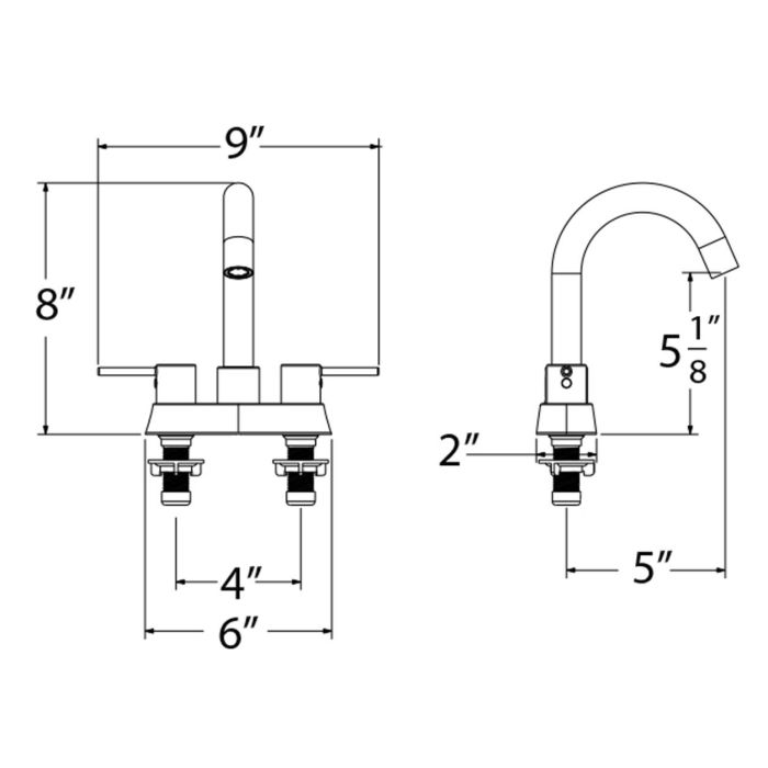 • This center set fits all standard 3 hole – 4″ sinks or can be installed in a custom counter top.