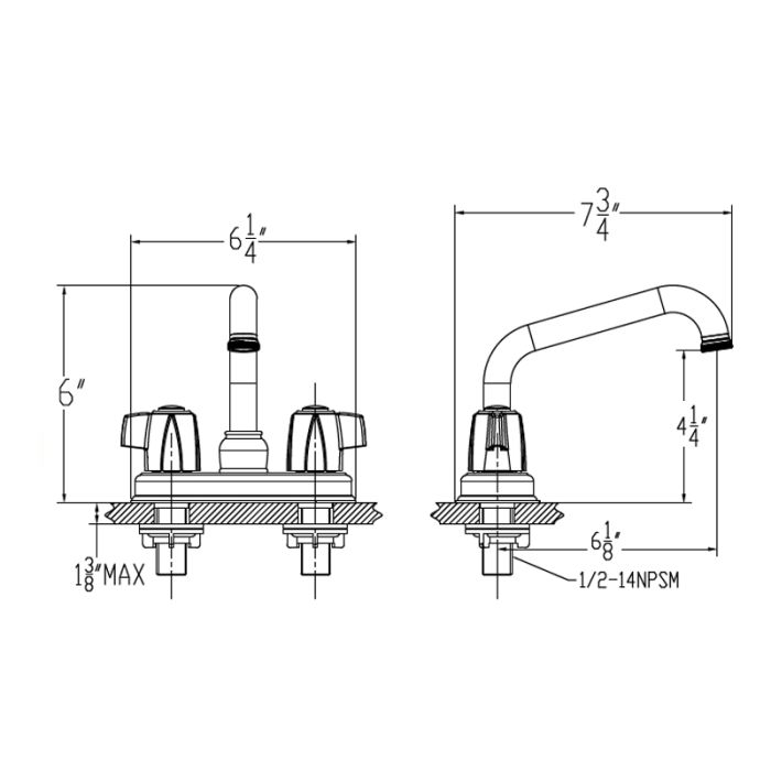 • Fits all standard 3 hole – 4″ sinks or can be installed in a custom drilled countertop.