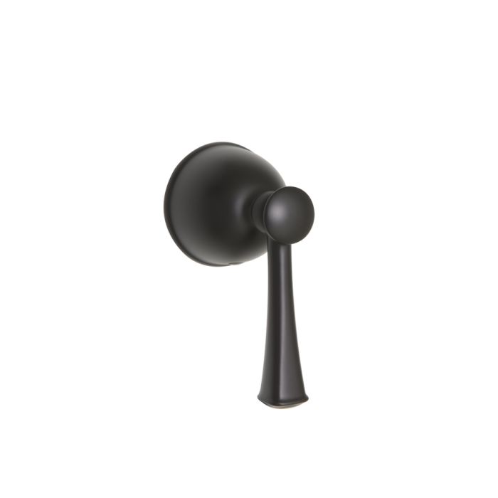 The Woodbury lever handle is designed for the lower temperature control position on the push-button shower valve trim, showcasing the elegant and stylish Woodbury design.