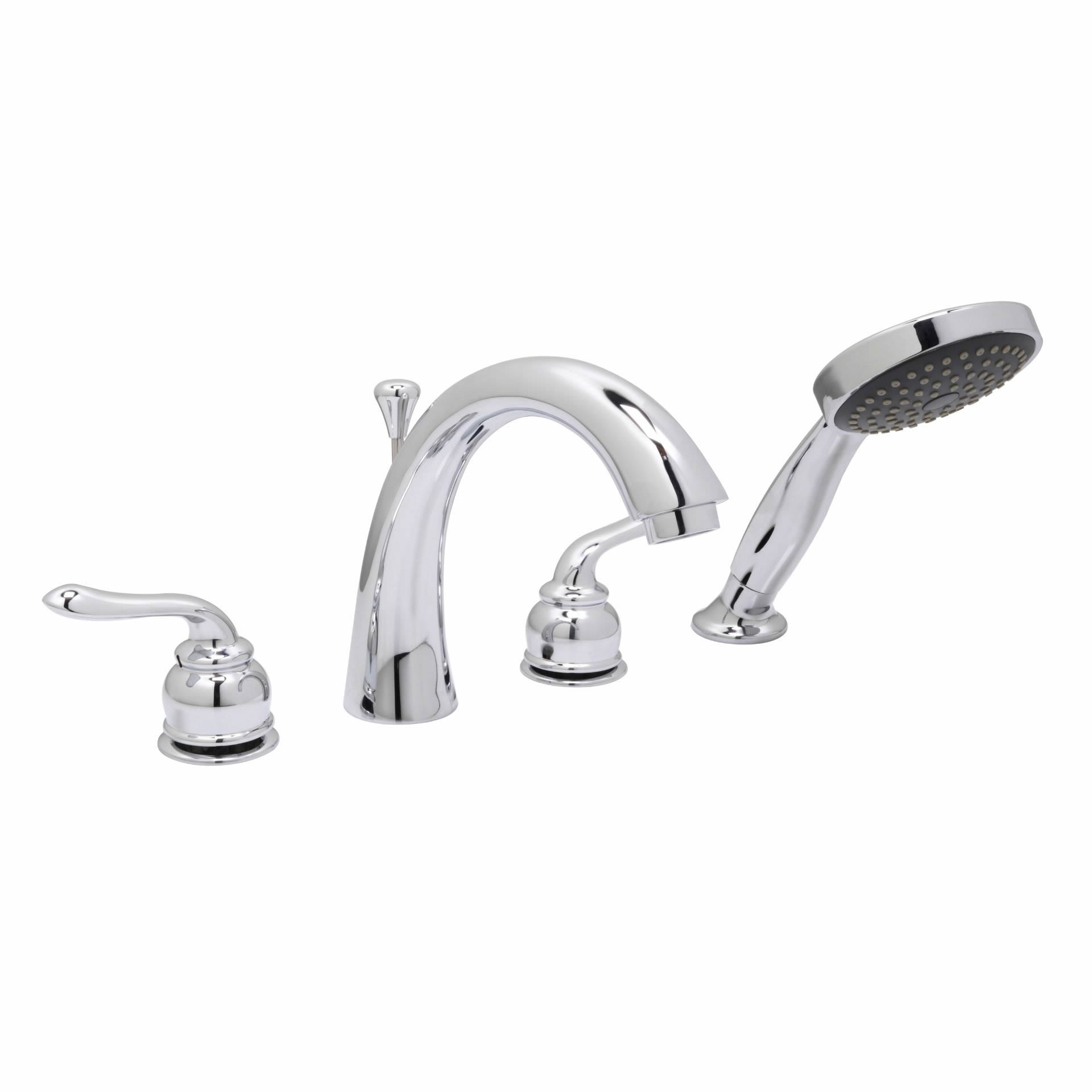 The Premier Care Faucet Replacement is a four piece dual handle roman tub filler faucet with its single control pull out hand shower are a timeless design that enables it to coordinate with a variety of different bathroom styles and fixtures. With its high volume high arc spout, built-in diverter knob and easy to control hot and cold levers.