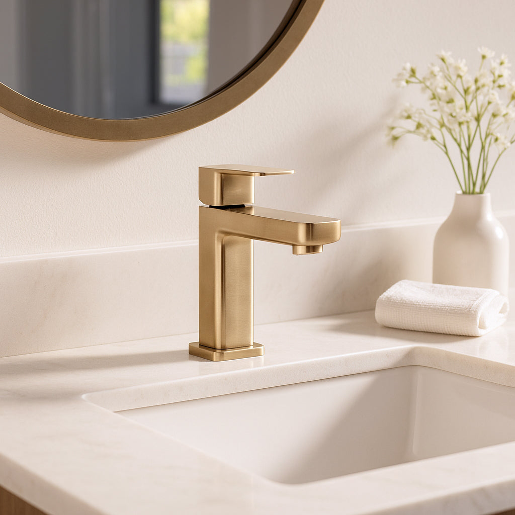 The Sevaun single-handle lavatory faucet features a captivating design that is both sophisticated and contemporary, blending square and round edges for a look that complements a wide range of bathroom decor styles.