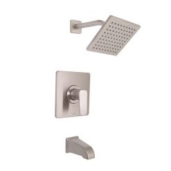 The Sevaun tub and shower package offers a sleek and contemporary design, featuring a softened handle, face plate, shower head and tub spout. The timeless design of this package will add a touch of style to your bathroom for many years to come.