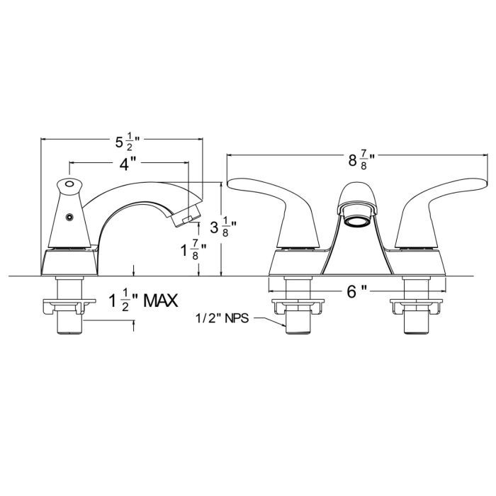 • This center set fits all standard 3 hole – 4″ sinks or can be installed in a custom countertop