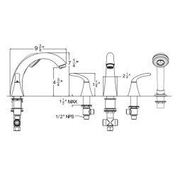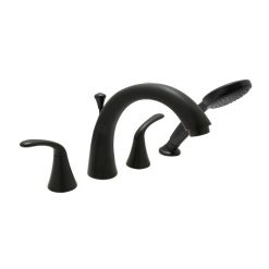 Huntington Brass Trend four-piece roman bathtub filler faucet with pull-out single setting hand shower. Contemporary styling to add a high-end style to your bathroom along with the durable metal construction. High quality, high arc spout to ensure the high-volume water that will fill the bathtub as fast as possible along with the life long lasting ceramic disc cartridges will give you a worry and leak free faucet for many years.