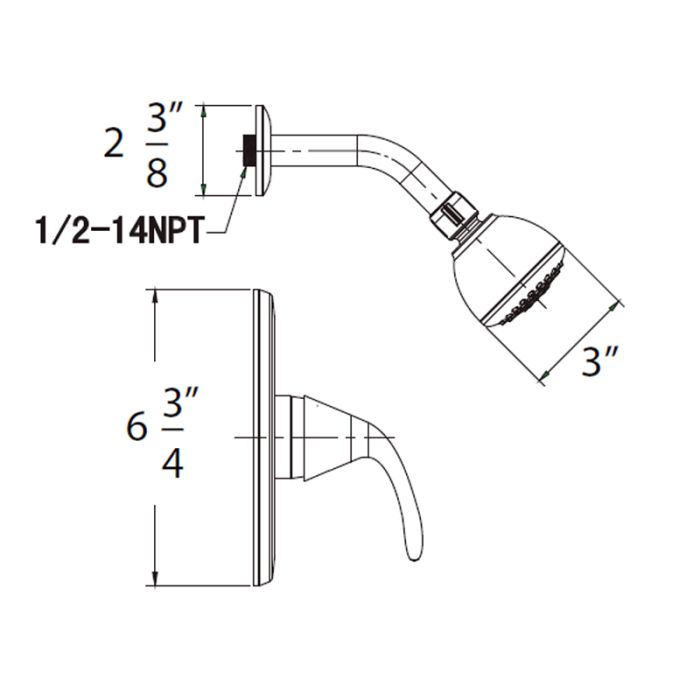 • 3″ Face single setting showerhead with shower arm and flange.