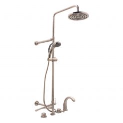 The elegant thermostatic Roman tub filler with shower head and hand shower offers a refined blend of performance and modern design for today’s bathroom. Featuring a sleek high-arc spout and a coordinated hand shower, this four-piece tub filler is designed to complement a wide range of bathroom styles. The thermostatic control maintains a consistent water temperature for added comfort and safety, while the integrated diverter allows for easy switching between the tub spout and shower head. With its balanced design and smooth operation, this Roman tub filler creates a luxurious bathing experience while adding a sophisticated finishing touch to the space.