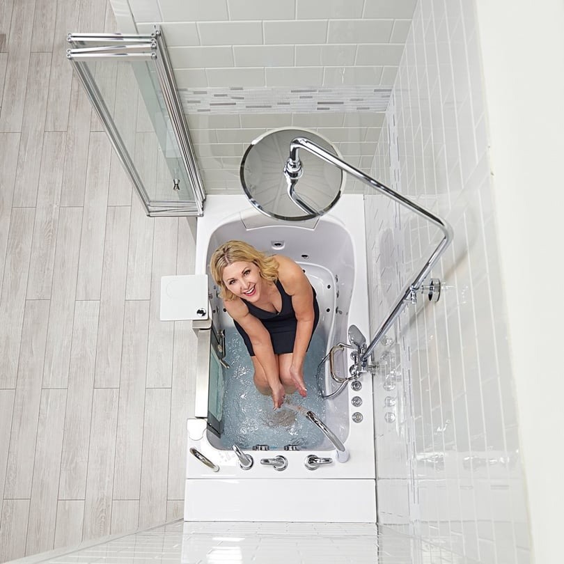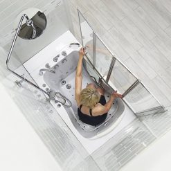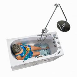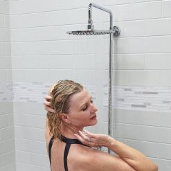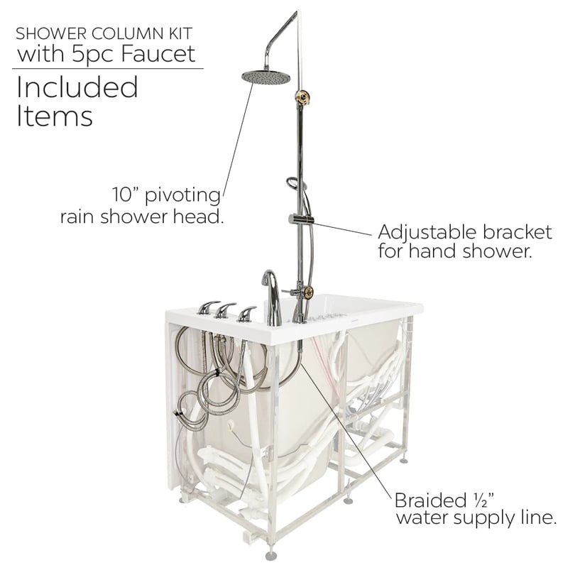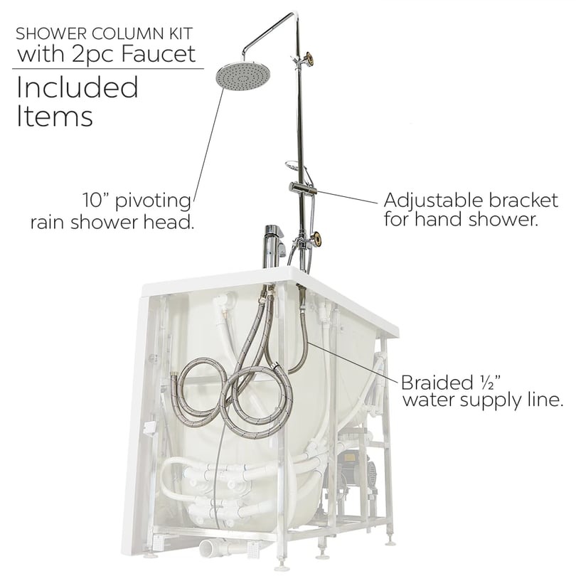 The TubToday Shower Column Kit is the only walk-in bathtub rain shower column available to be added after installation, superior to other shower kits due to its uniquely oversized rain shower. This universal kit is designed to fit any walk-in bathtub that has a separate hand-held shower “hole” drilled into the deck of the bathtub, making it compatible with a wide range of models. In most cases, the kit includes all necessary fittings for most brands of walk-in bathtubs; however, in some situations, your plumbing contractor may need to provide a common adapter and/or braided supply line from the faucet/diverter valve to the shower column. The stainless steel, chrome finish column can be effortlessly adjusted up to 7 feet tall. Along the column is a vertically movable, 5-mode multi-functional hand shower. Attached to the top is an oversize rain shower that can be directed with ease to the seat for a seated shower or footwell for a stand-up shower. This shower column kit replaces the need for a wall-mounted showerhead in your walk-in bathtub and must be installed on a walk-in bathtub that is placed in an alcove, against a wall, so that the wall mounting brackets may be fastened. For installation, a plumbing contractor will need access below the bathtub, which can be achieved through the “shelf” or fill kit installed on most walk-in bathtubs, through the main access panel on the tub apron if large enough to work through, or through an access panel created on an adjacent wall to the bathtub—anticipate several hours of installation work. Please note that this kit may be returned after being opened, but the returner would need to cover shipping costs, and the return is subject to a 35% restocking fee.
