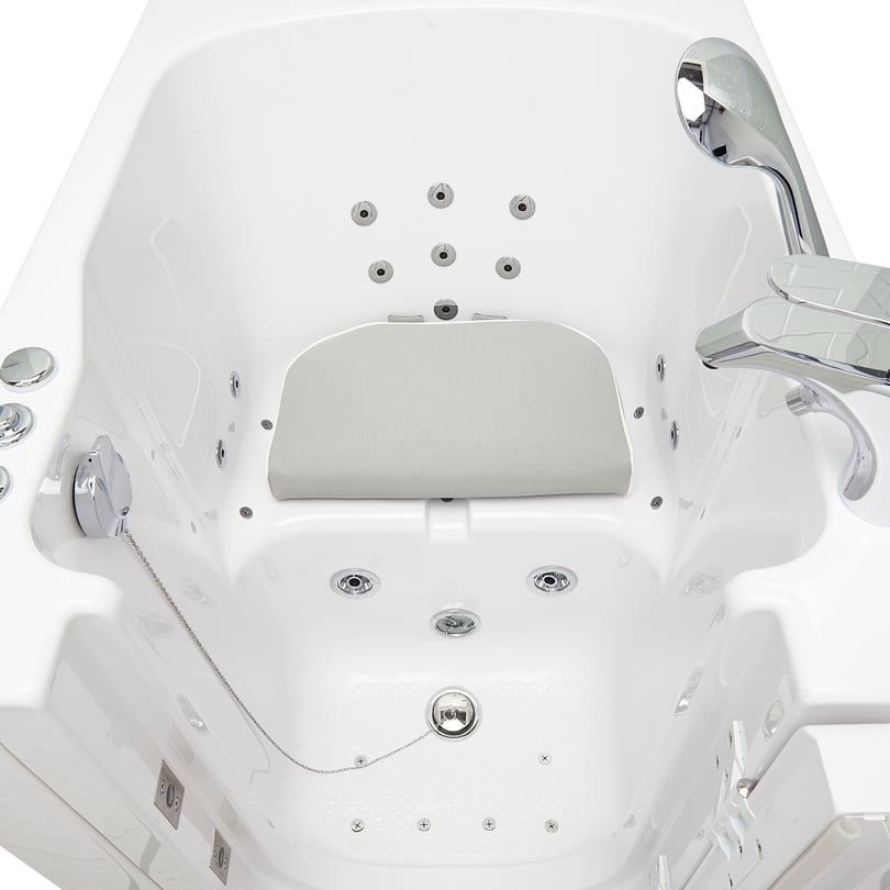 TubToday ’s standard 3″ seat riser adds extra comfort and support to the smooth acrylic seat for a more enjoyable experience. This waterproof foam cushion securely attaches to any TubToday tub that is 28″, 30″, or 32″ wide. The cushion measures 20 1/2″ W x 13″ L x 3 1/2″ H. When compressed, the seat cushion is 1 1/2″ high. The interior material is washable and can be removed.